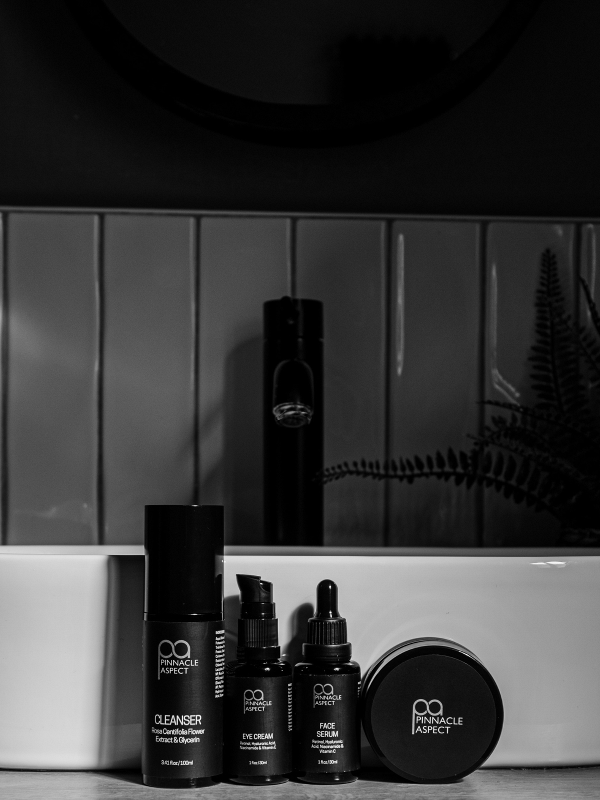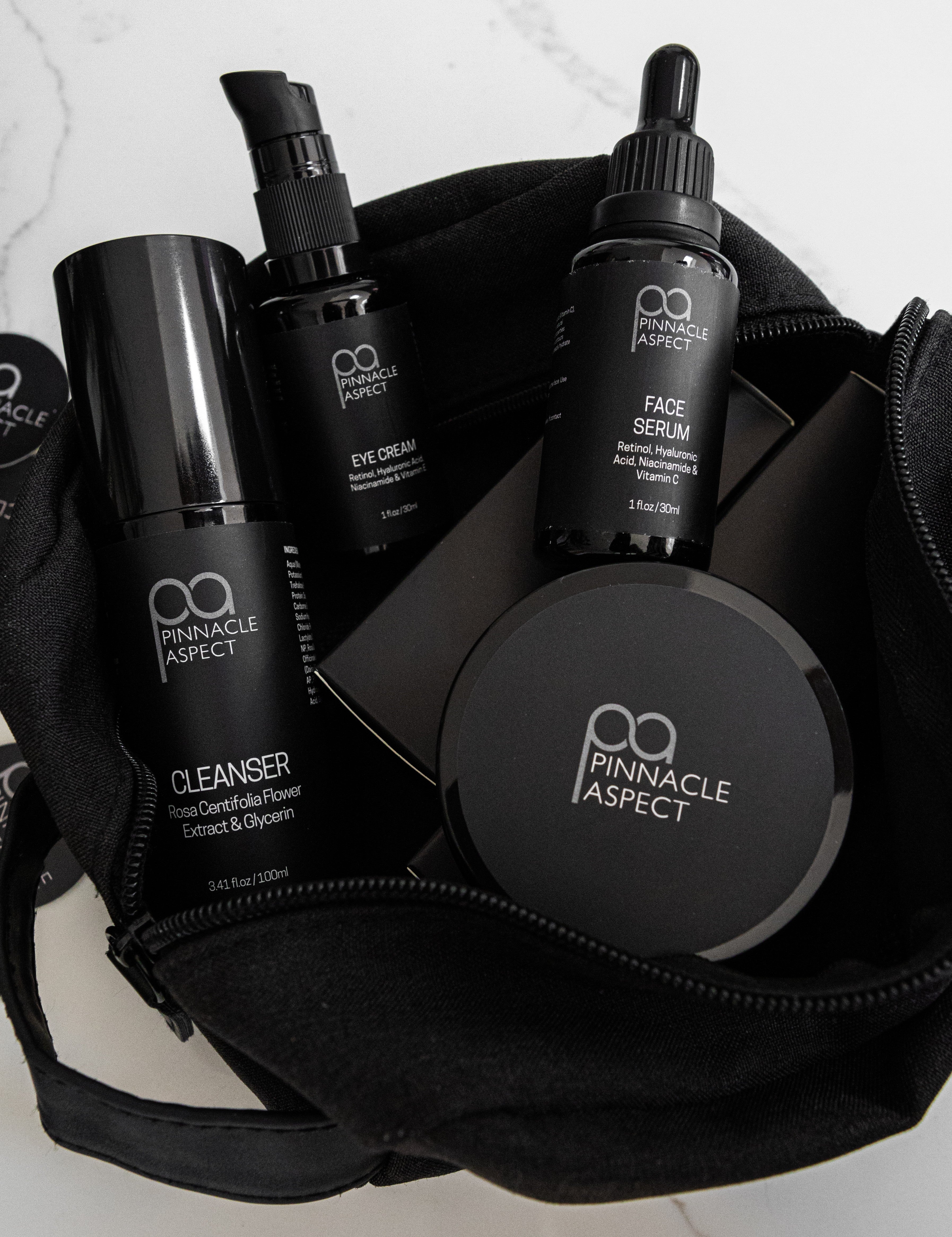 Four essentials, one bag. Cleanse, hydrate, firm, and refresh with Pinnacle Aspect’s complete skincare set designed to keep your skin at its best, every day.