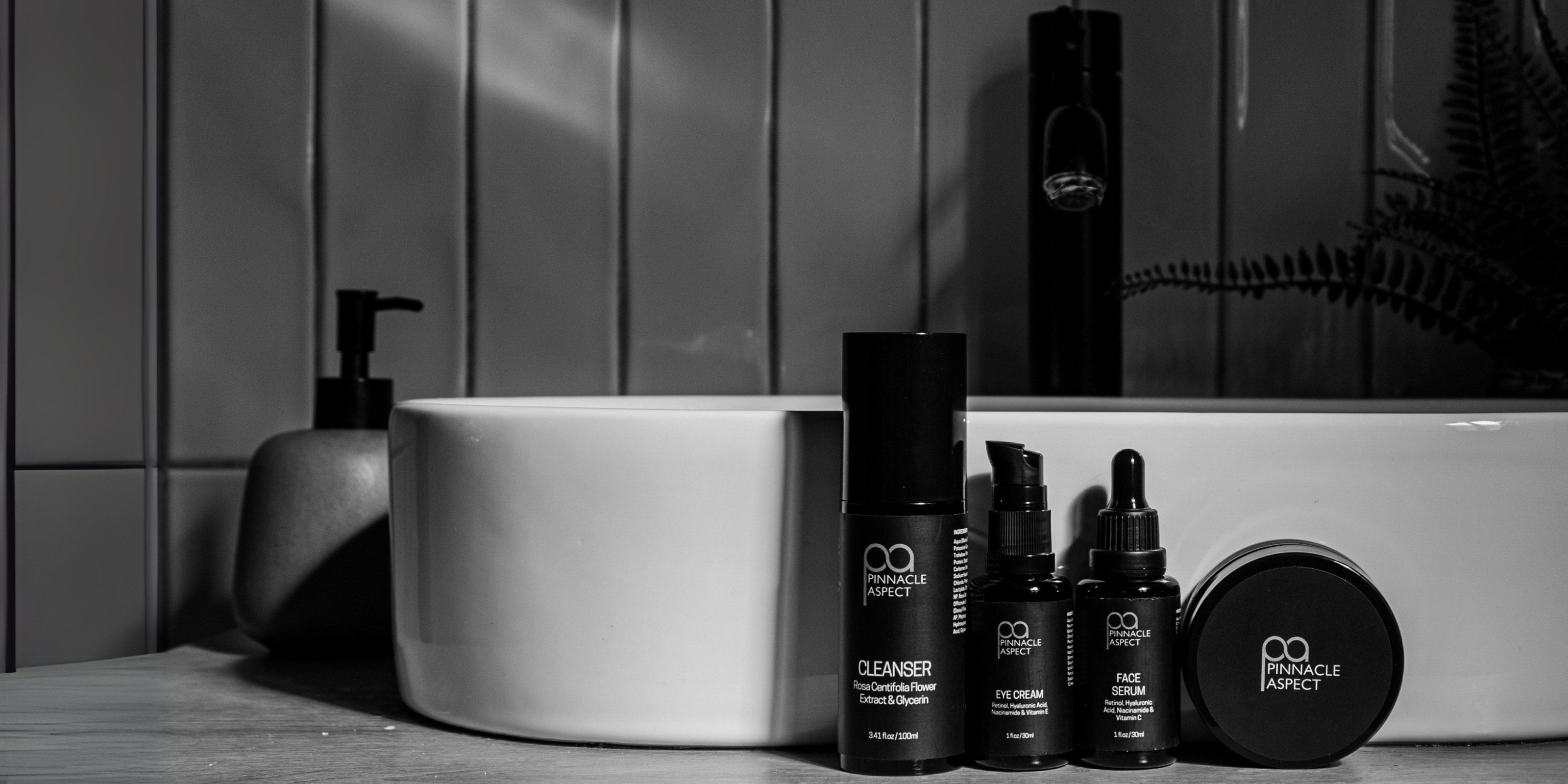 Four essentials, one bag. Cleanse, hydrate, firm, and refresh with Pinnacle Aspect’s complete skincare set designed to keep your skin at its best, every day.