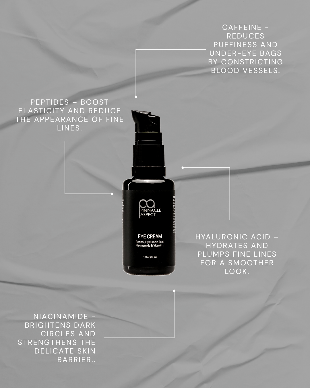 Designed to target tired eyes - reducing puffiness, dark circles, and fine lines. Light and fast-absorbing for daily use, AM + PM.